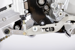 Elle offre ainsi une amélioration des performances dans les virages, de la stabilité et de la traction du train avant. Les longerons principaux ont une forme trapézoïdale pour assurer un bon équilibre entre rigidité et flexibilité. Grâce à un bras oscillant en aluminium CNC la géométrie permet un meilleur transfert de charge sur la roue arrière pour une meilleure motricité. La boucle arrière participe à la centralisation des masses.